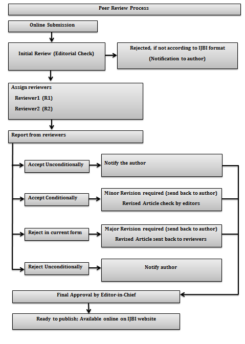 The IJBI follows double-blind review process, in which the identity of both the reviewers and the author (s) remain confidential. It ensures impartiality and helps each and every article to get an unbiased review. Peer reviewers play a central and critical role in ensuring the integrity of the scholarly record and serve as backbone for the quality of the journal. This process depends largely upon the trust and willing participation of the scholarly community with ethical and time bound responsibility. The IJBI maintains the proper communication with the reviewers to facilitate consistent, fair and timely review. The chief editor mediates all communications between reviewers and authors but the peer reviews are not published.